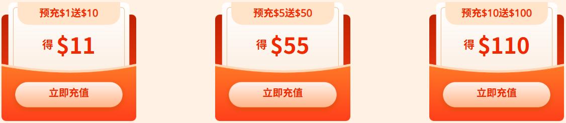 预先充值享10倍膨胀,充$16送$160!膨胀金11月10日-11月16日可用,限参与一次!